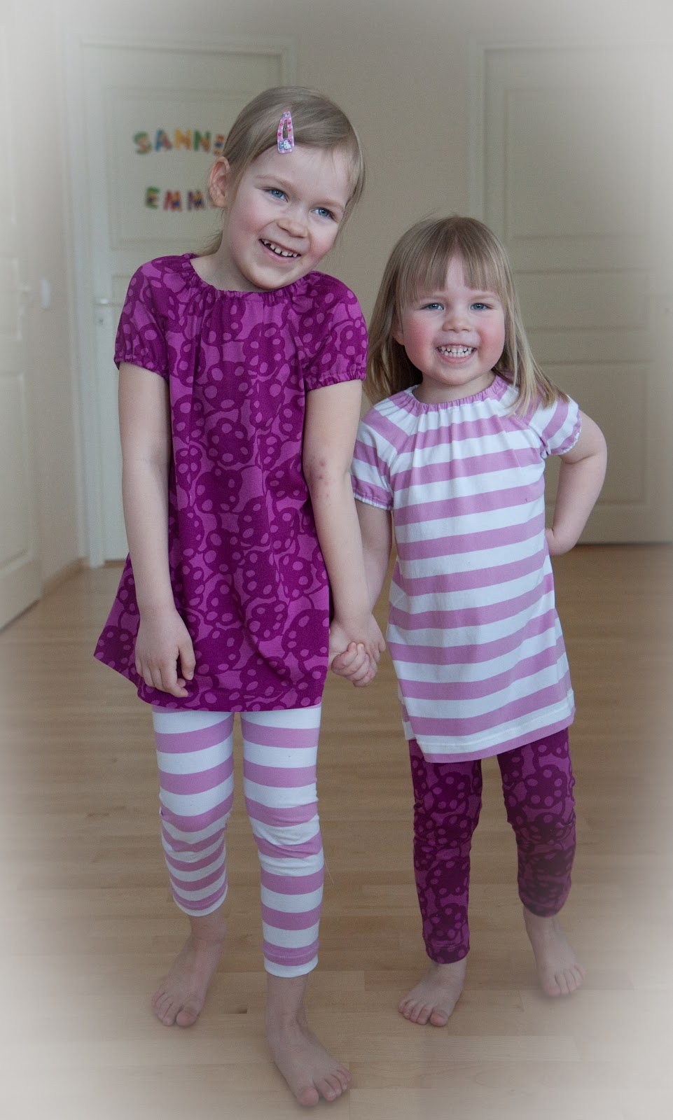 Perjantai-illan pikatikkinä syntyivät haaremihousut esikoiselle, Ottobren 1/2011 kaavaa varioiden. Ottobren lyhyet ja leveät kaavat tuntien tein nämä 116 cm leveydellä ja 128 cm pituudella ja hyvät on; resoria kääntämällä pystyy säätämään lahkeen mittaa sopivaksi. Hailakan turkoosi trikoo Huvikankaan alesta, materiaalikustannukset n. 10 euroa. Ihan ok pitohousut tytölle, jonka päällä ei saa vaatteet kiristää. Kuvat puhukoot puolestaan.